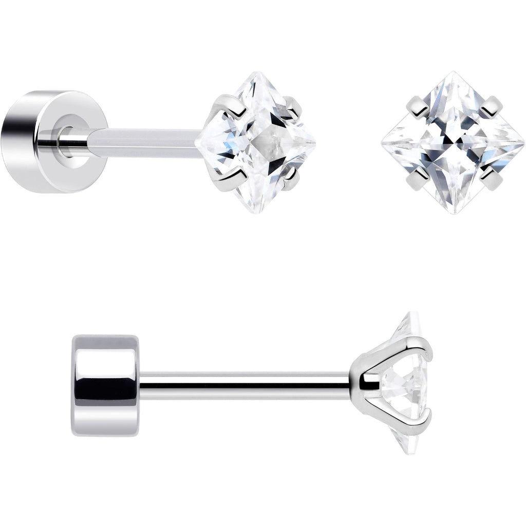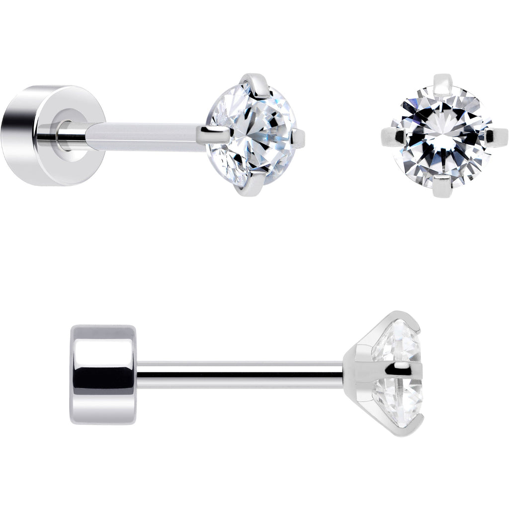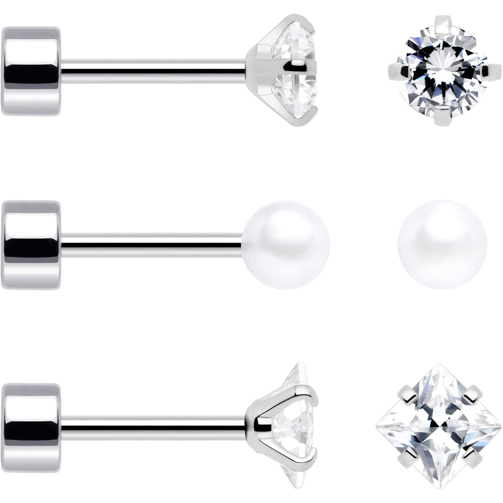 Check out these super comfortable 20 gauge flat back earrings for 24/7 wear. No need to take these earrings out; keep them in for sleeping and naps. They're made with 316L surgical grade stainless steel straight posts with flat disc ends. One pair features round clear gems while the second pair features opaque white orbs. The third pair features rhombus-shaped clear gems. You'll wonder how you lived without this stylish and comfortable ear piercing jewelry. Sold as a set of six.