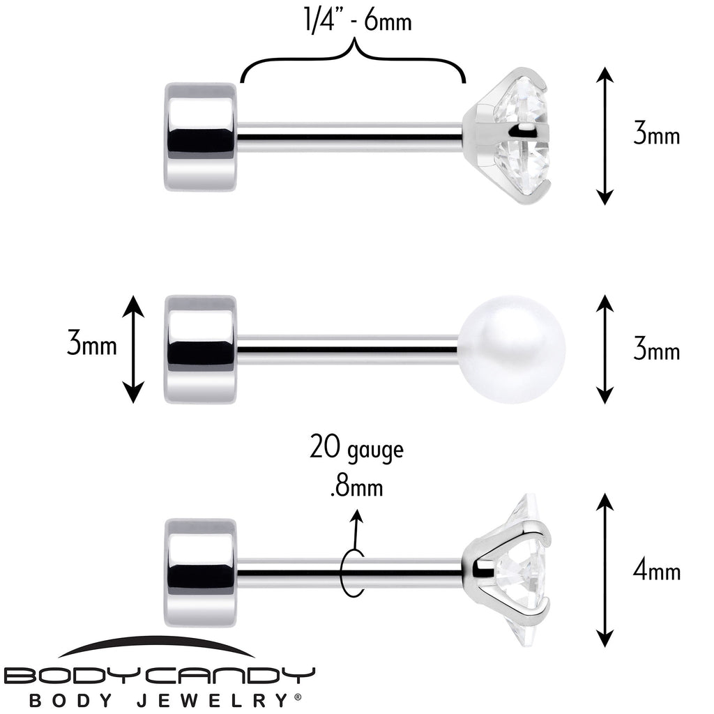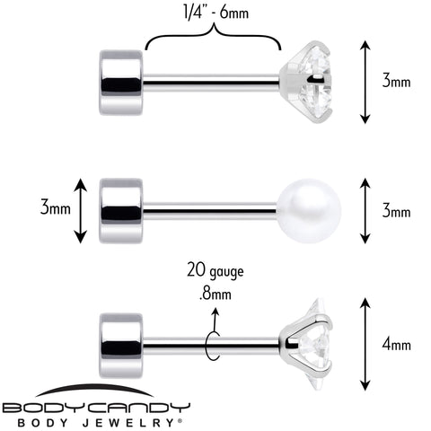 20G Clear Gem White Orb Flatback Earring Set of 6