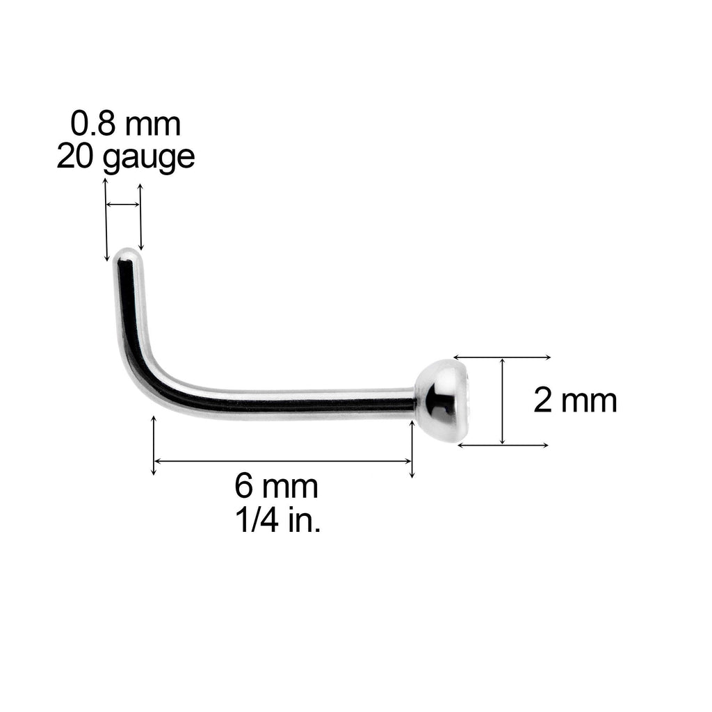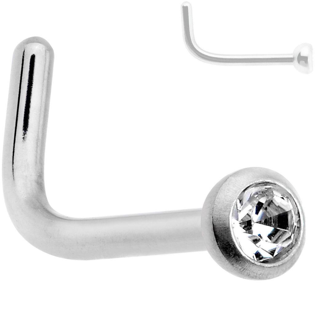 Hypoallergenic jewelry for sensitive skin20 Gauge G23 Titanium Press Fit Clear CZ Micro Ball L Shaped Nose Ring