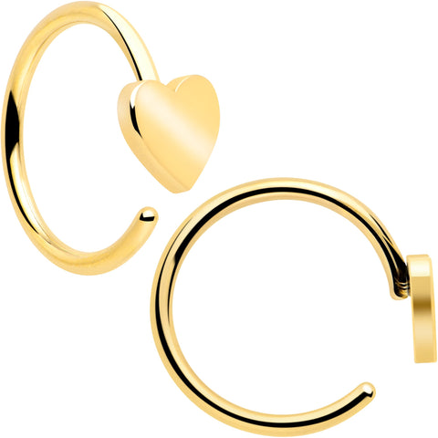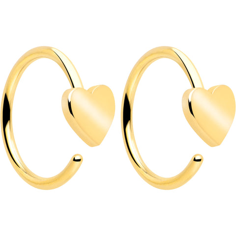 20 Gauge Gold Tone Implant Grade Titanium Heart Open Hoop Earring Set