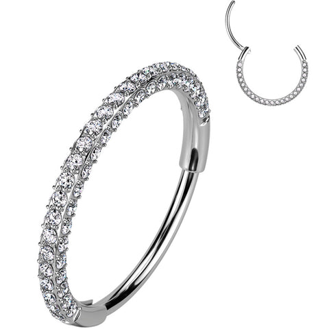 20 Gauge (.8mm) Hinged Closure, Implant Grade Titanium 6AL-4V-ELI ASTM F-136, Cubic Zirconia 3 Paved Sides, Segment Ring, Available in diameter sizes from 7mm to 10 mm