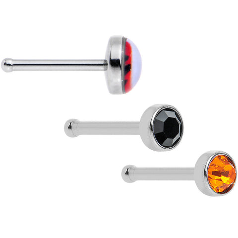 Looking for nose jewelry style that shows off your love for the all-American game of football? Well, we've got the sports fan within you covered with this pack of three officially licensed NFL 20 gauge nose studs! With 6mm length straight posts made from 316L surgical grade stainless steel, these nose bones are perfect for interchanging your style whatever your mood may be this season with the option of a Cincinnati Bengals logo stud design along with a choice of orange or black gem studs for when you want to promote your team without the logo.