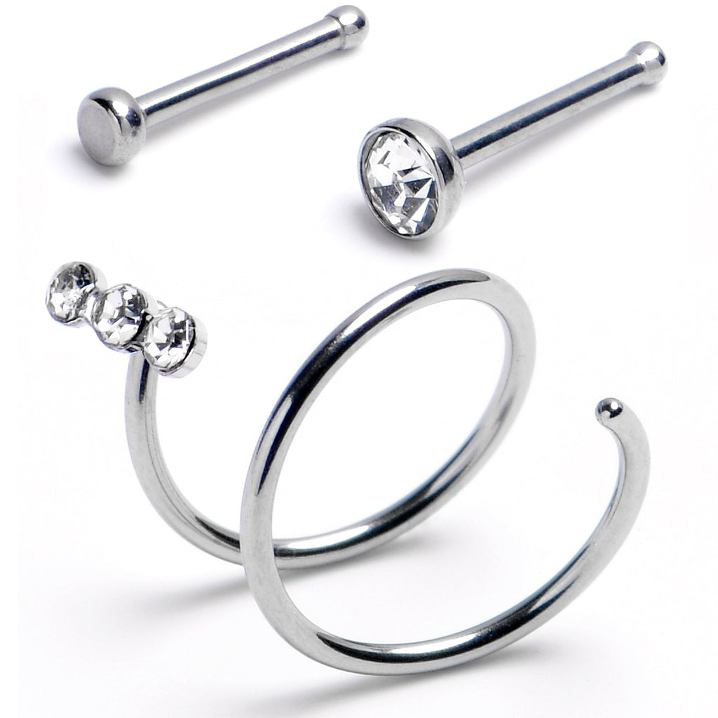 20 Gauge (.8mm), 5/16" (8mm), 316L Surgical Grade Stainless Steel, 2 Nose Bone and 1 Double Spiral Nose Ring 3 Pack, Spiral Nose Ring for Right Side