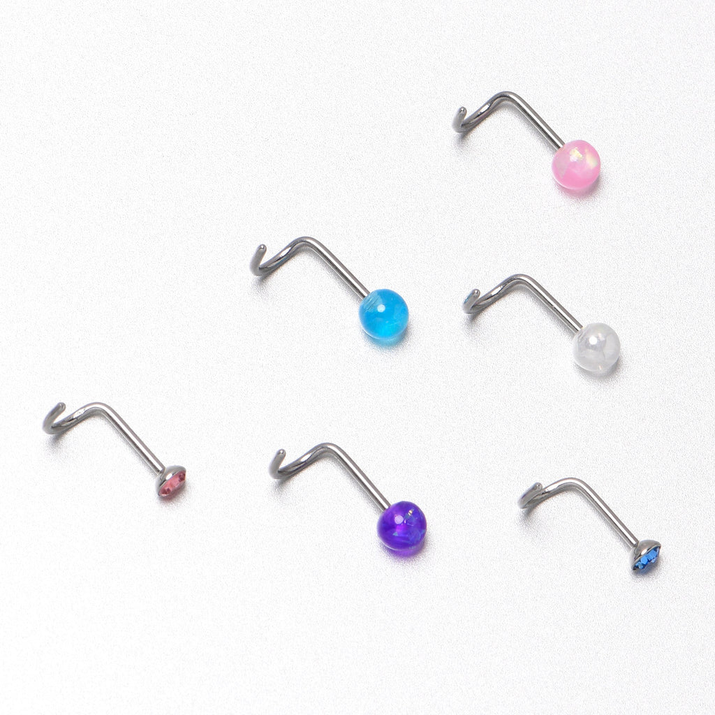 20 Gauge Nose Screw Gem Faux Opal Pack Pretty Nose Ring Set of 6