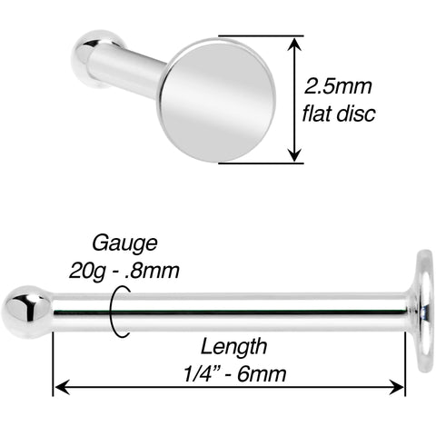 20 Gauge Solid 14k Gold Flat Disc Nose Bone