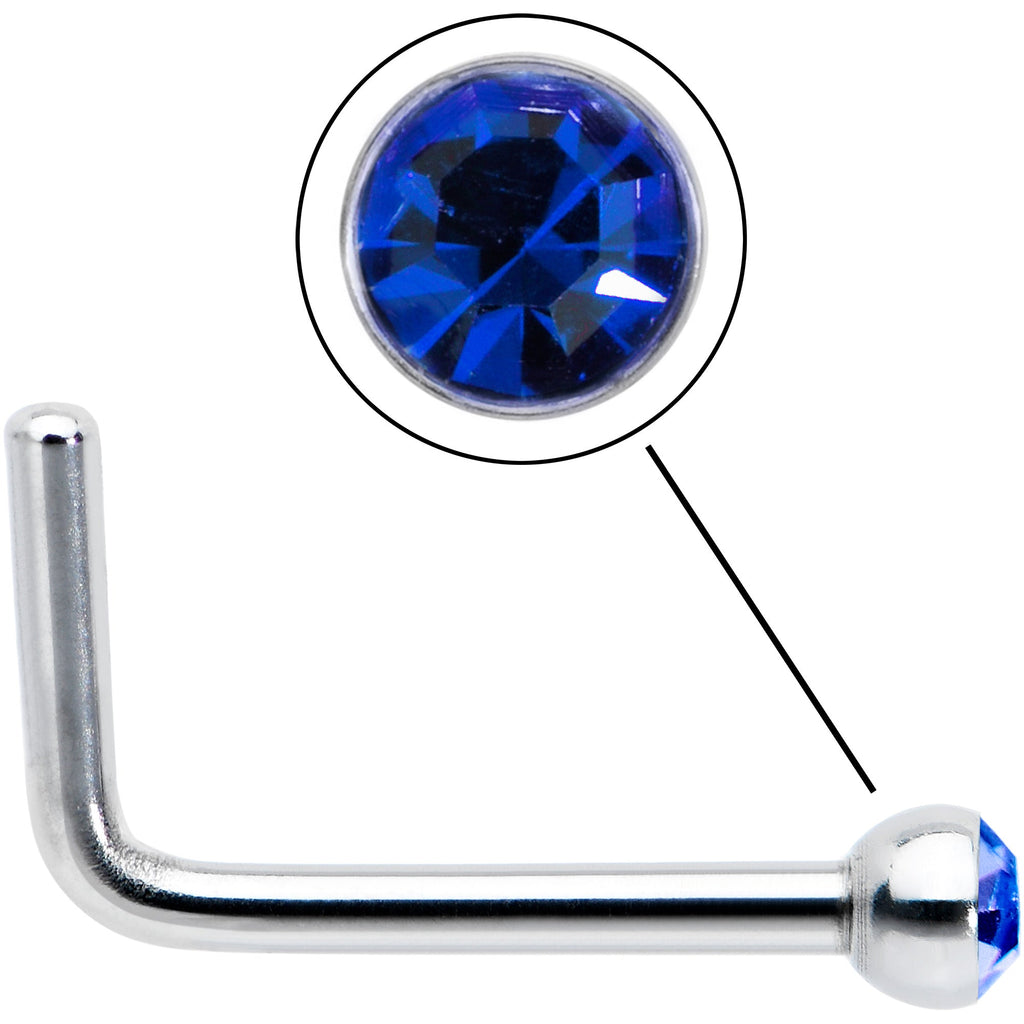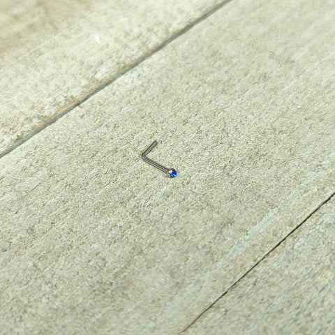 Hypoallergenic jewelry for sensitive skinBlue gem nose piercing. Micro 1.57mm nose stud piercing with an l-shape. Sexy and discreet micro L-shape nose ring. Series 157 nose studs. Gem nose ring body jewelry made from 316L surgical steel.