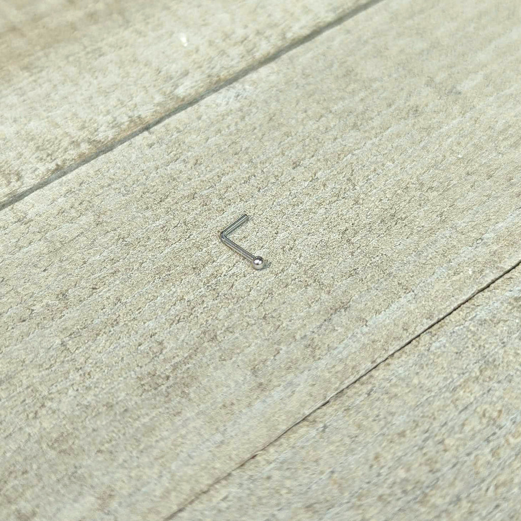 Hypoallergenic jewelry for sensitive skinClassic ball nose piercing. Micro 1.57mm ball nose stud piercing with an l-shape. Sexy and discreet micro L-shape nose ring. Series 157 nose studs. Nose ring body jewelry made from 316L surgical steel.