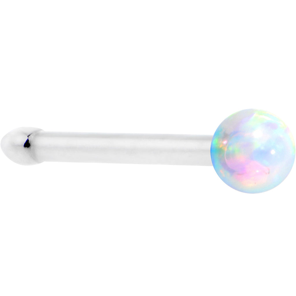 Hypoallergenic jewelry for sensitive skin ,20 Gauge White Synthetic Opal Stud Stainless Steel Nose Bone