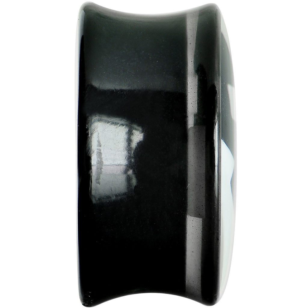 Hypoallergenic jewelry for sensitive skin.This 20mm (13/16") saddle plug displays a white mustache design against a black background. Uncover your inner manliness no matter your gender with this piece of acrylic jewelry. The ear plug is sold individually, so please purchase two (2) of this item if you desire a pair.