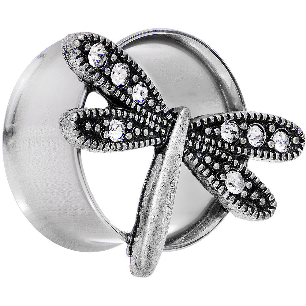 20mm Clear Gem Steel Hi Sky Dragonfly Double Flare Tunnel Plug Set