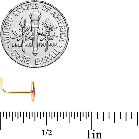 22 Gauge 5/16 Gold Tone Rainbow Hippie Peace Sign L Shaped Nose Ring
