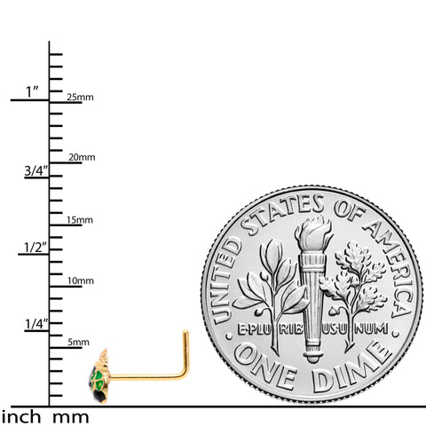 Don't let your nose piercing go without some holiday bling this St. Patrick's Day! This 22 gauge nostril jewelry is made with an 8mm length at the bend gold tone anodized over 316L surgical grade stainless steel post. It features a black shamrock pot of gold charm end filled with treasure that will have everyone who sees it saying "Cheers" to the Irish!Specifications