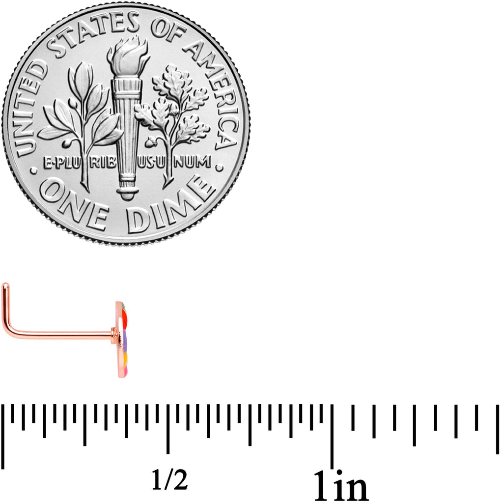 22 Gauge 5/16 Rose Gold Tone Rainbow Peace Sign L Shaped Nose Ring