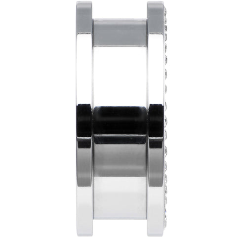 Hypoallergenic jewelry for sensitive skinAnchor your stretched lobes with this screw fit tunnel plug. This 316L surgical grade stainless steel ear plug features a glittering pink anchor design within the body jewelry's tunneled structure surrounded by a circle of clear sparkling accents. This 1" tunnel is sold individually, so please make sure to select a quantity of two (2) when ordering if you desire a pair.