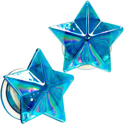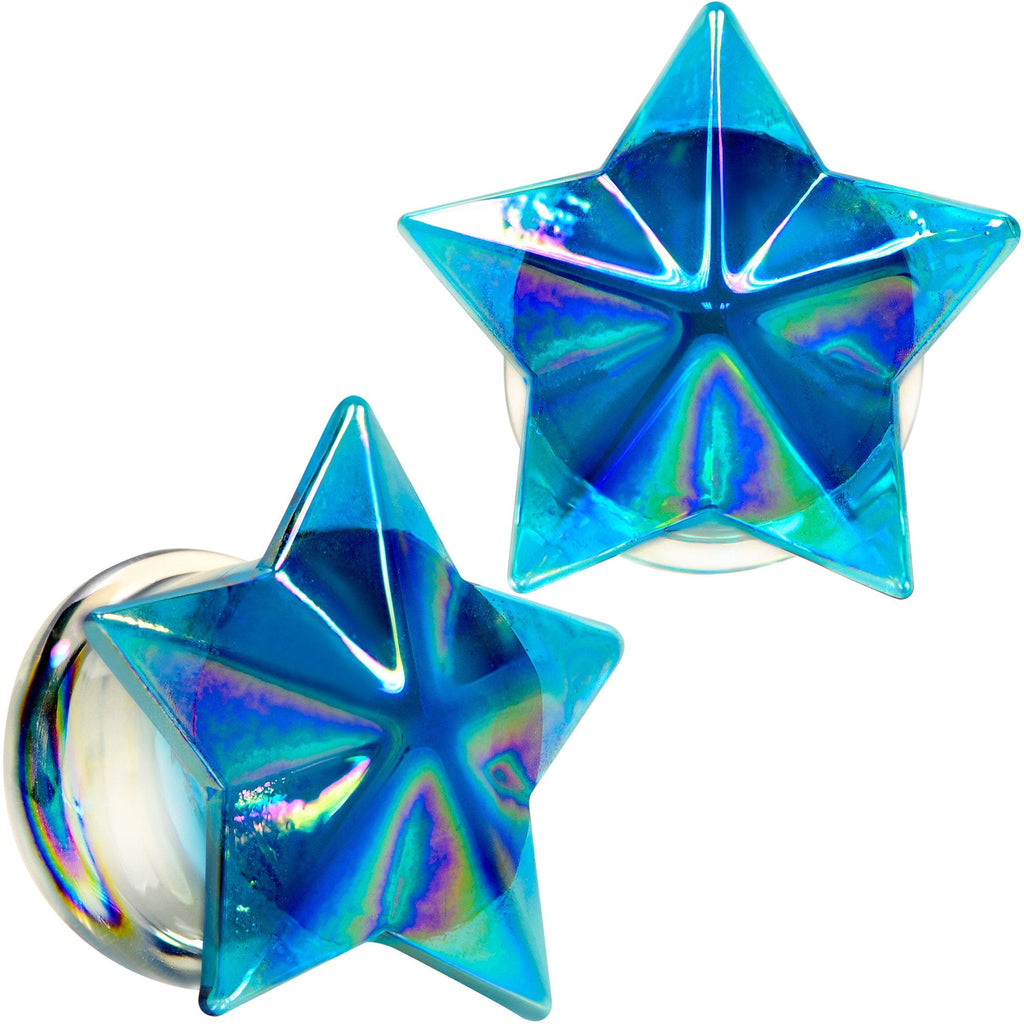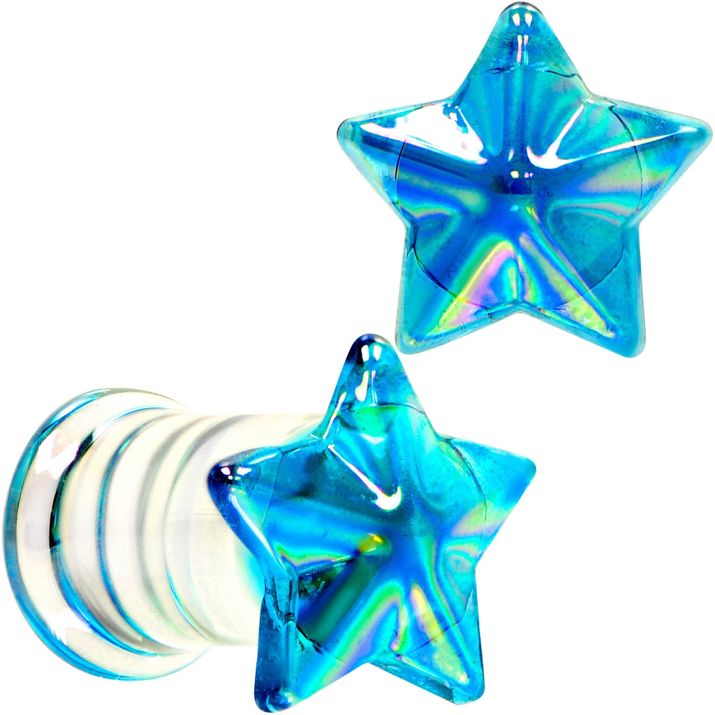 Starlight, star bright, hopefully, the first star you see tonight are these gorgeous star-shaped ear plugs! These glass plugs are double flare for secure wear and feature faceted star-shaped fronts in a breathtaking shade of aurora blue. They are made of glass for a lightweight and comfortable feel and are sold as a set of two. Available in sizes 2 Guage (6mm) to 5/8" (16mm).