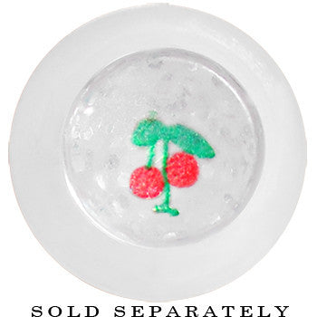 Hypoallergenic jewelry for sensitive skin.Sold individually, Please purchase a quantity of 2 for a pair. 6mm glitter straight taper. Clear acrylic taper ear plug with cherry pattern. Cherry taper Body Jewelry./font>
