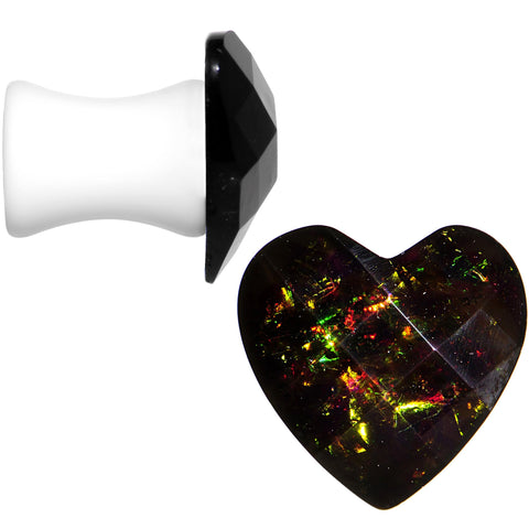 Hypoallergenic jewelry for sensitive skin.Whether you are in love with having hearts as a forever part of your look or want Cupid to know that you're in search of a Valentine's Day treat these unique plugs are a perfect choice. Made from lightweight white acrylic, these 6mm ear gauges feature a multifaceted, glimmering black heart front face and double flare design for secure, comfortable wear. These saddle plugs are sold as a set of two and are ready to be loved by you.
