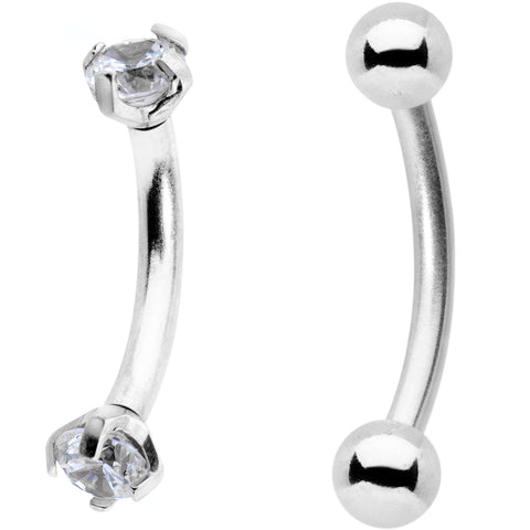 3/8" Clear CZ Gem PVD Curved Eyebrow Ring Set of 6