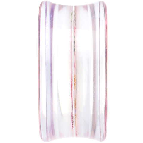 Hypoallergenic jewelry for sensitive skin.Item sold individually, purchase two for a pair. Old-fashioned style goes modified on this colorful and flower-filled ear expander plug. The 30mm double flare saddle plug features pink and purple roses against a pastel pink background that might just make you think of the wallpaper in your favorite granny's living room. Pierced acrylic body jewelry ear gauge plug.