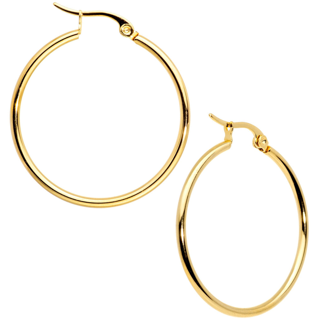 Hypoallergenic jewelry for sensitive skin30mm Gold Tone PVD Stainless Steel Hoop Earrings