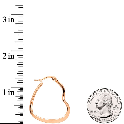 Whether you're madly in love or still looking for your special valentine, you'll have no problem opening your heart to these 1.18" diameter flat heart-shaped hoop earrings! These fashion earrings are made with rose gold tone PVD over stainless steel and feature snap hinge closures for easy insertion and removal as well as secure wear. You'll be head over heels in love with them!