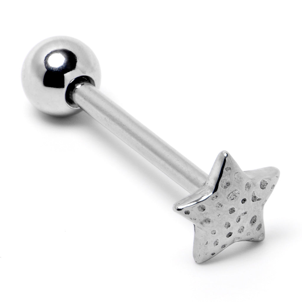316L Surgical Steel Texture Star Barbell Tongue Ring