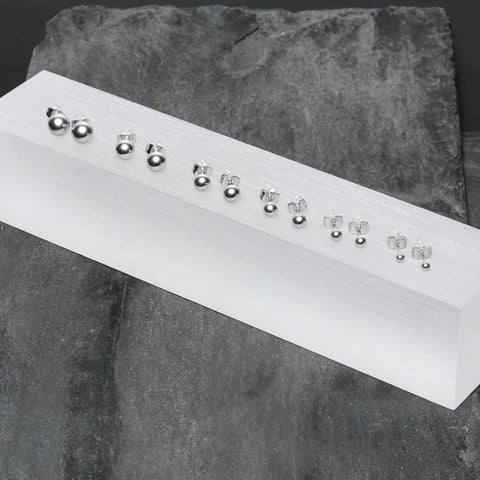 If you are looking for classic style that goes with everything, these 20 gauge earrings will have you ready for any occasion. They are made with 316L surgical grade stainless steel straight posts and have butterfly-style friction backs for a secure fit. They feature simple ball ends with subtle style that will not overwhelm. You get one pair each in 3mm, 4mm, 5mm , 6mm, 7mm, and 8mm for a touch of classic chic to go with every look. These are sure to add some simple elegance to your pierced lobes. Sold as a set of six.Specifications