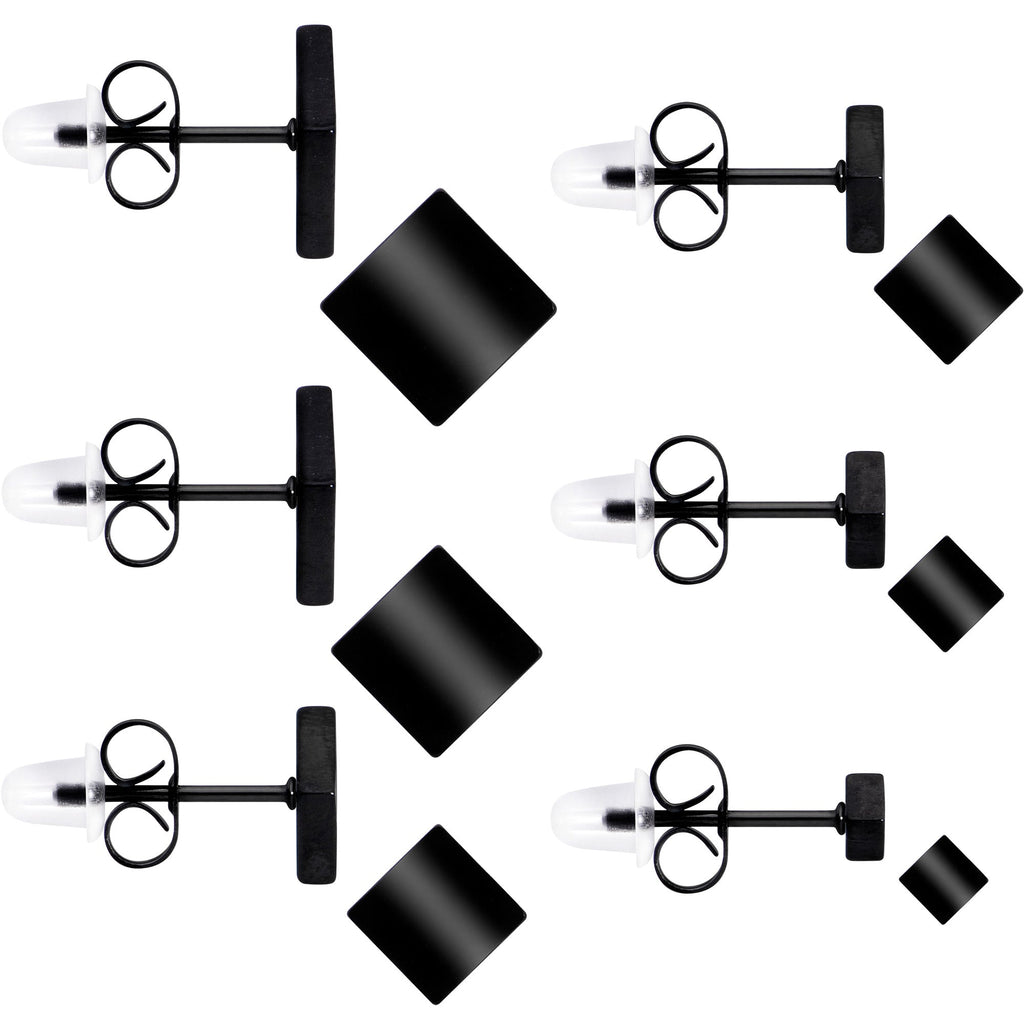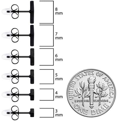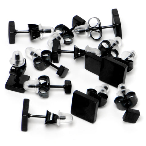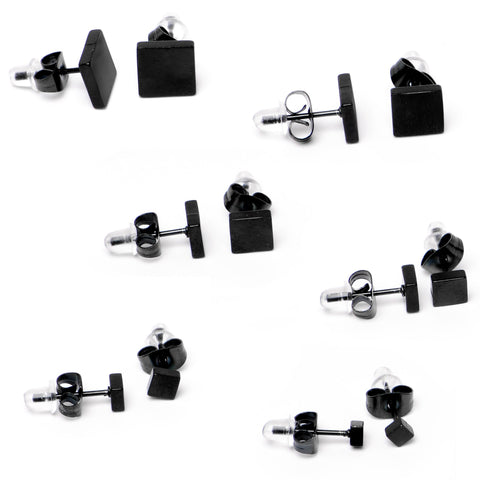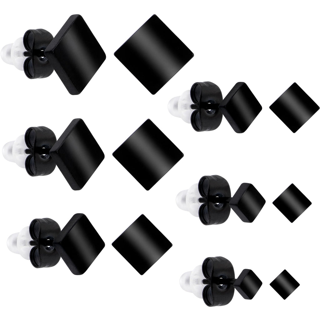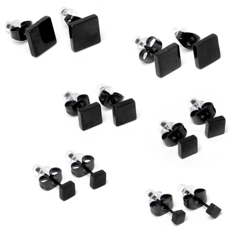 3mm-8mm Square Stud Black 316L Stainless Steel Earrings 6 Pack