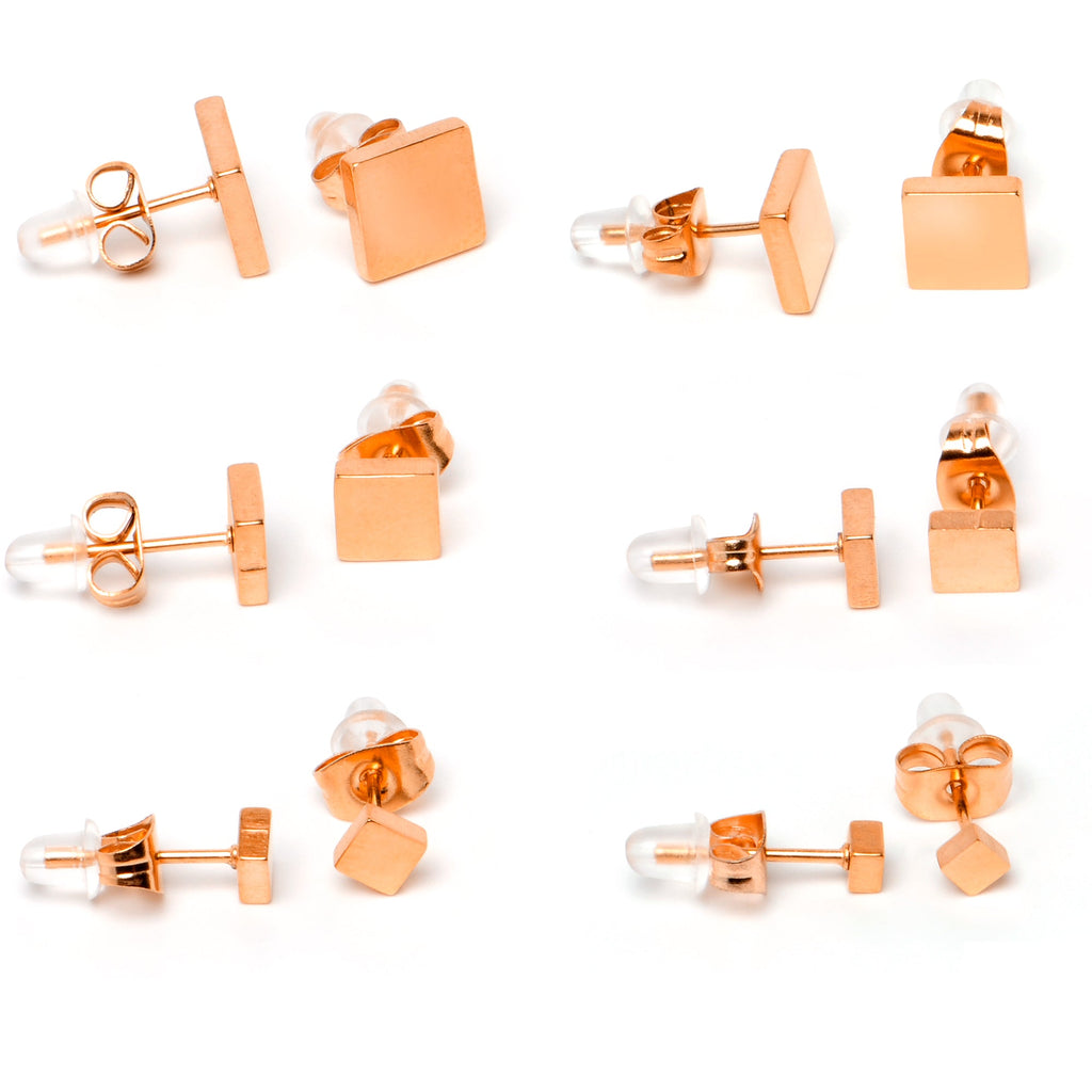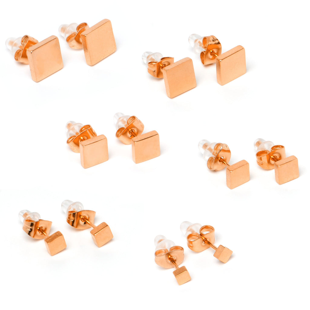 Hypoallergenic jewelry for sensitive skin3mm-8mm Square Stud Rose Gold Tone 316L Stainless Steel Earrings 6 Pack