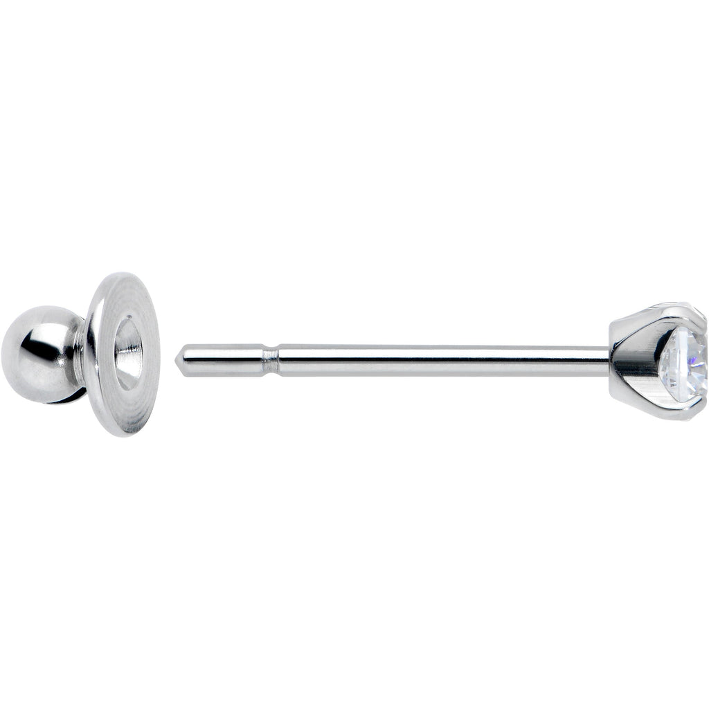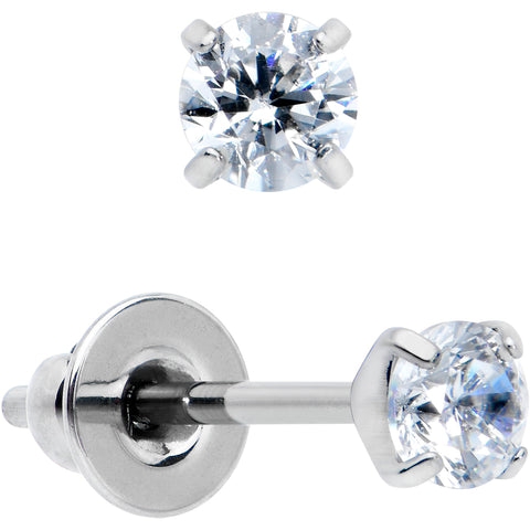 Get a timeless look with this pair of 20 gauge stud earrings! These fashion earrings are made with ASTM F-136 titanium posts and feature 3mm clear cubic zirconia gems for a classic and elegant appearance. These implant grade titanium earrings for women also feature butterfly-style friction backs for a secure fit. Stay stylish without sacrificing quality with this super sweet set of stud earrings! Sold as a set of two.Specifications