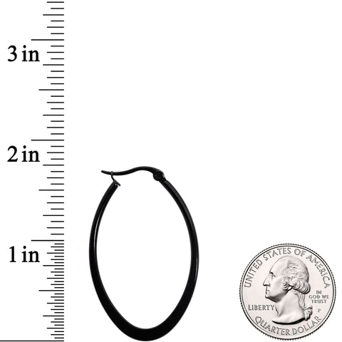 Hypoallergenic jewelry for sensitive skin40mm Black Tone PVD Stainless Steel Oval Hoop Earrings