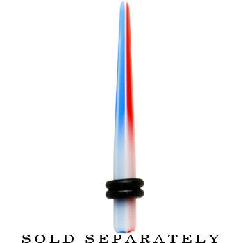 Hypoallergenic jewelry for sensitive skin.4 gauge acrylic taper. UV Acrylic peace sign inlayed multi colored taper with O-rings. This acrylic expender is sold individually.