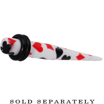 Hypoallergenic jewelry for sensitive skin.4 gauge ear taper Body Jewelry.This acrylic taper is designed with classic playing card symbols including red hearts and diamonds, and black spades and clubs.