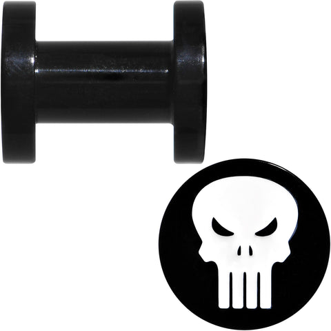 This 5mm ear gauge size plug set features two black PVD over stainless steel Punisher logo ear plugs. Take on the mob and the criminal underworld with Frank Castle and Punisher ear plug body jewelry. These white enamel skull logo superhero steel screw fit plugs are sold as a pair of two (2). The Punisher is from Marvel Comics jewelry. Licensed cartoon ear plugs.