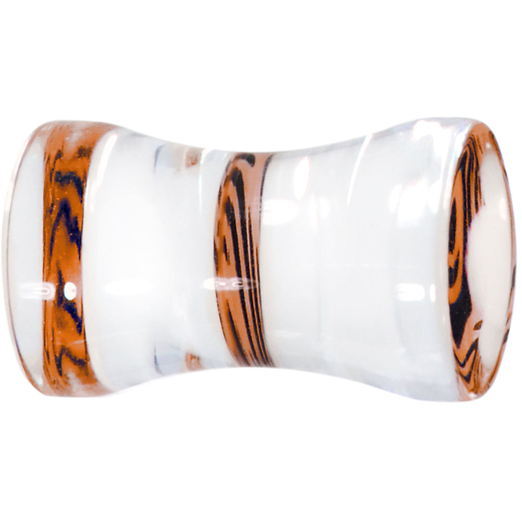 Sold Individually, Please purchase a quantity of 2 for a pair. 5mm acrylic plug Body Jewelry.Clear acrylic plug with an orange zebra print inlay. Show off your stripes with this animal print ear plug.