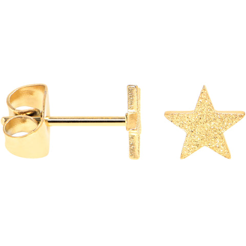 If you are looking for classic style that goes with everything, these 18 gauge earrings will have you ready for any occasion. They are made with gold tone PVD over 316L surgical grade stainless steel straight posts and have butterfly-style friction backs for a secure fit. They feature simple star ends with subtle style that will not overwhelm. You get one pair each in 4mm, 6mm, and 8mm for a touch of classic chic to go with every look. These are sure to add some simple elegance to your pierced lobes. Sold as a set of six.Specifications