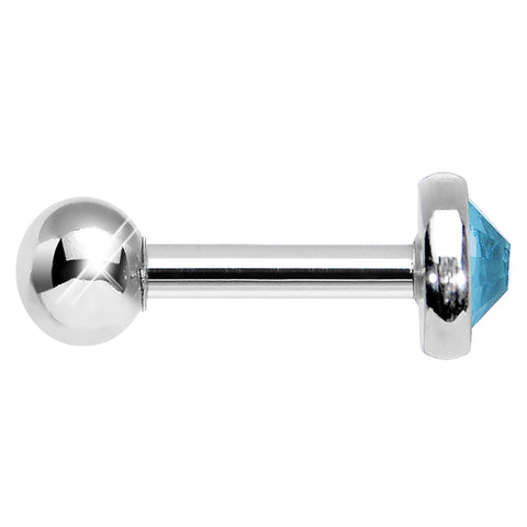 Add a touch of color to your tragus or cartilage piercing with this 4mm aqua gem barbell earring. Barbell made of surgical grade stainless steel, internally threaded. Round flat aqua gem tragus cartilage earring.