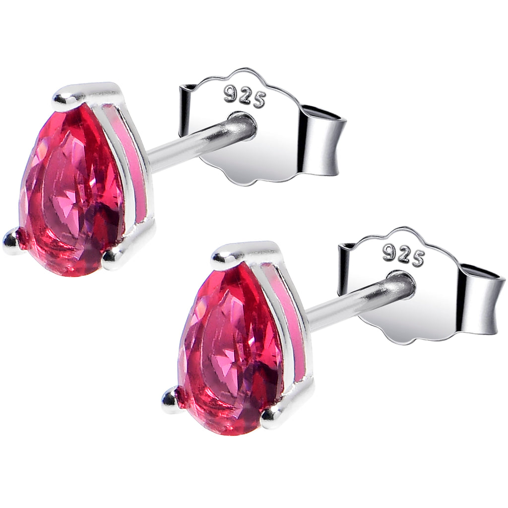 4mm CZ Pear 925 Sterling Silver July Birthstone Stud Earrings