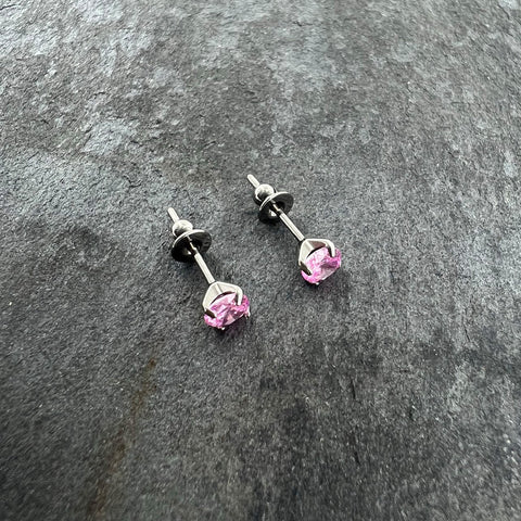 Hypoallergenic jewelry for sensitive skin4mm Pink CZ Gem Implant Grade Titanium Stud Earrings