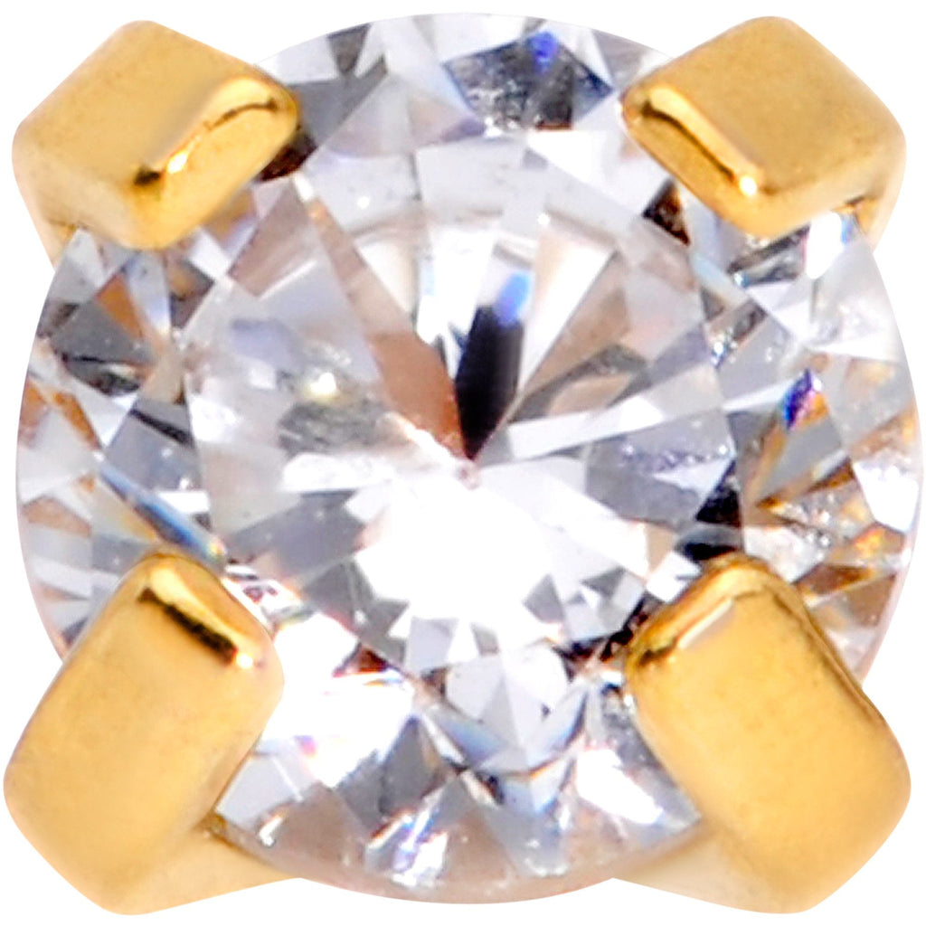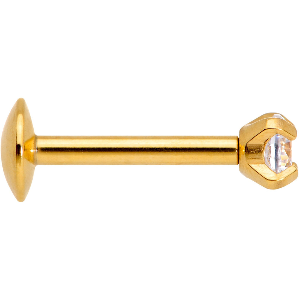 5/16" Clear 2mm Gem Gold IP Internally Threaded Labret Monroe Tragus