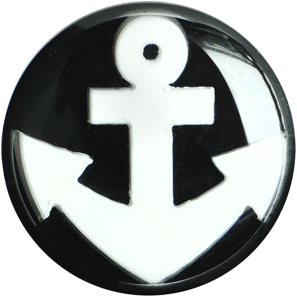 Hypoallergenic jewelry for sensitive skin.This nautical themed plug features a lovely contrasted look with a black background highlight the white anchor. 5/8" black acrylic saddle plug is perfect for any ocean-inspired look. Sold individually, purchase 2 for a pair.