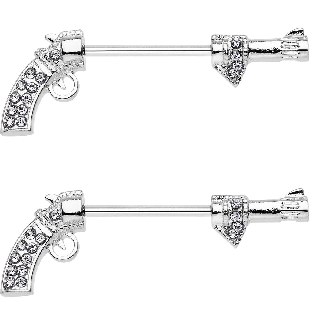5/8" Clear Gem Old West Revolver Barbell Nipple Ring Set