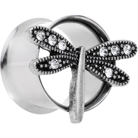 5/8" Clear Gem Steel Hi Sky Dragonfly Double Flare Tunnel Plug Set