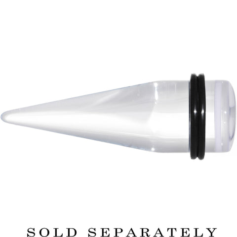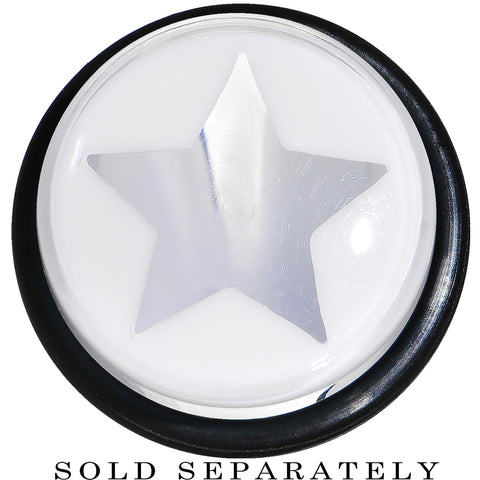 Hypoallergenic jewelry for sensitive skin.Item sold individually, purchase two for a pair. Always have a wish on hand when you wear this star acrylic ear expander taper plug. The solid clear acrylic 16mm ear stretcher is topped with white and a clear star at the center. Pierced body jewelry straight taper ear gauge plug comes with two rubber O-rings.