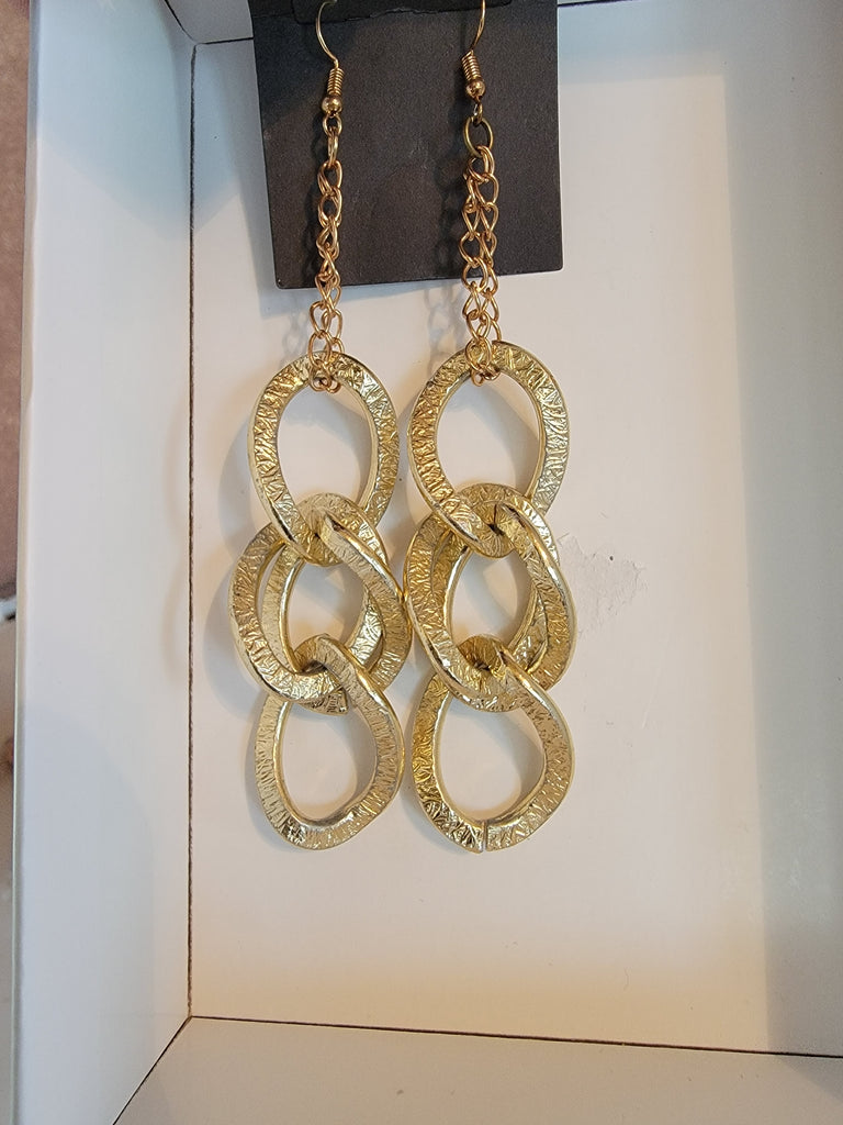 Simple gold tone bracelet, light weight, with matching earrings, and too cute to pass up.
