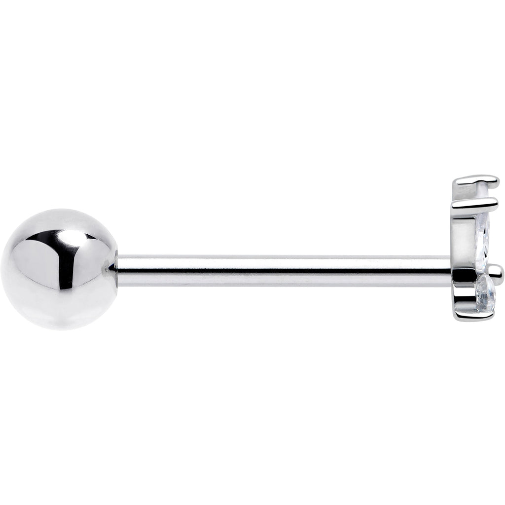Clear CZ Gem Open Wing Butterfly Barbell Tongue Ring