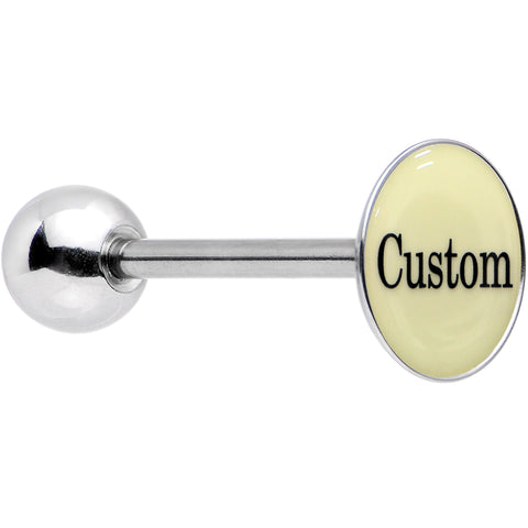 Hypoallergenic jewelry for sensitive skin.Show the world that you are all about unique style whenever you wear this vibrant, fashionable 14 gauge tongue ring. Created with a surgical grade stainless steel straight barbell and a ready-to-customize logo inlay, this tongue piercing glows in the dark, will add a little something special to your look, and is the perfect addition to any tongue jewelry collection.